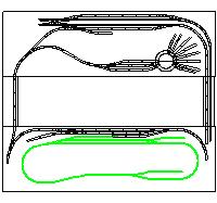 Schmalspurbahn, die in TTe (grün dargestellt) ausgeführt wird. Lok und